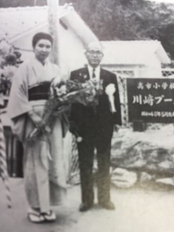 この写真は高市小学校でのプールの落成式の際の川崎先生です。